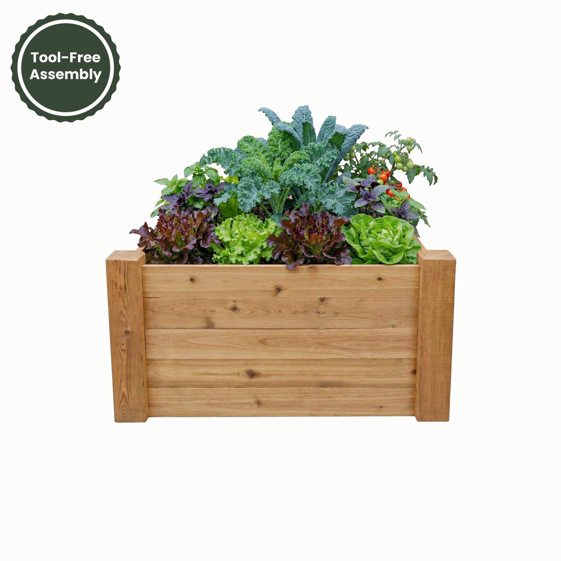 Designed for effortless setup, this raised garden bed features a simple, tool-free assembly with no tools or hardware required—just slide the pre-cut cedar boards securely into place and your bed is ready in minutes. For best results, position on level ground over grass or soil to allow for proper drainage, then fill with high-quality garden soil and compost, water thoroughly, and start planting. For added weed protection, consider laying landscape fabric or cardboard beneath the bed before filling.