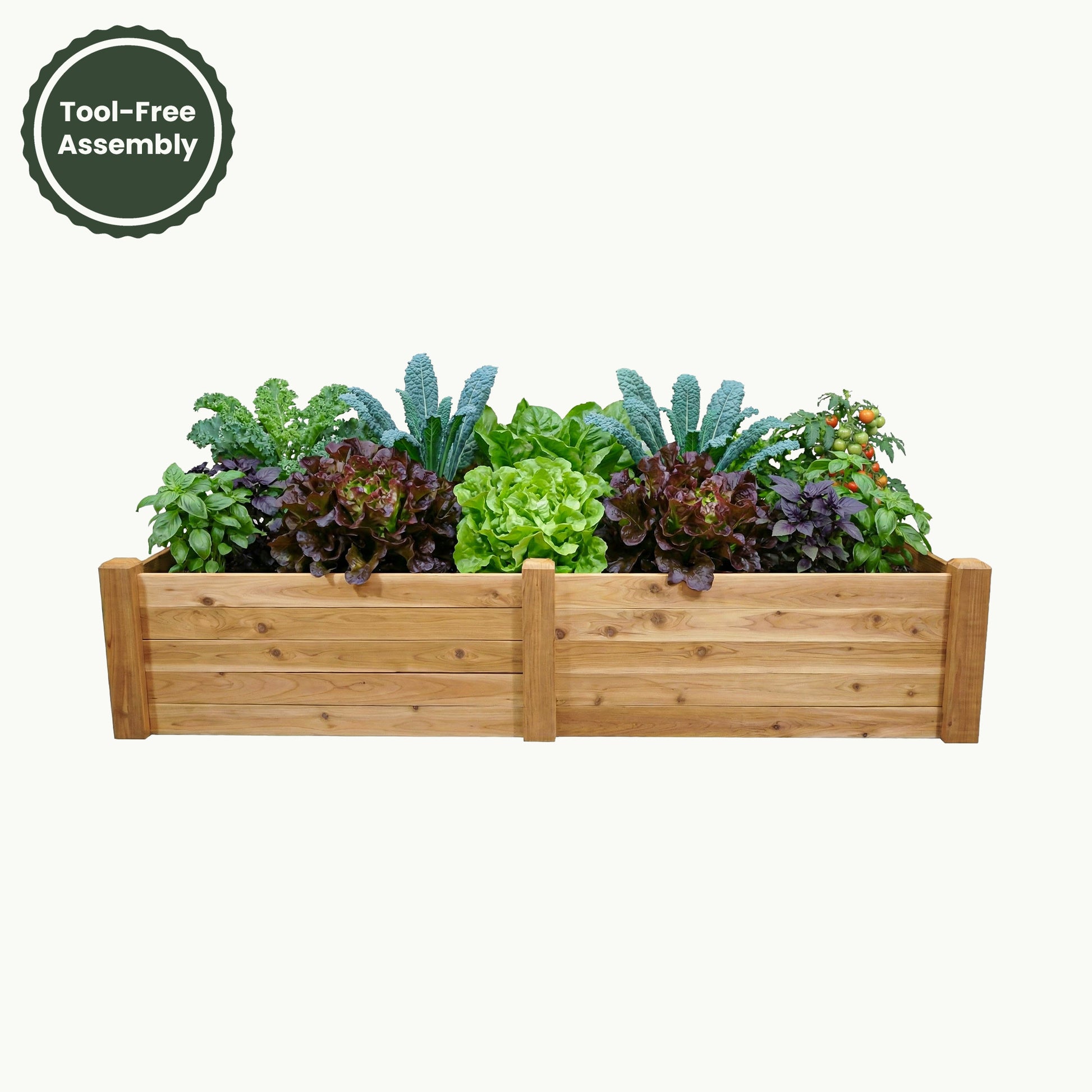 Designed for effortless setup, this raised garden bed features a simple, tool-free assembly with no tools or hardware required—just slide the pre-cut cedar boards securely into place and your bed is ready in minutes. For best results, position on level ground over grass or soil to allow for proper drainage, then fill with high-quality garden soil and compost, water thoroughly, and start planting. For added weed protection, consider laying landscape fabric or cardboard beneath the bed before filling.